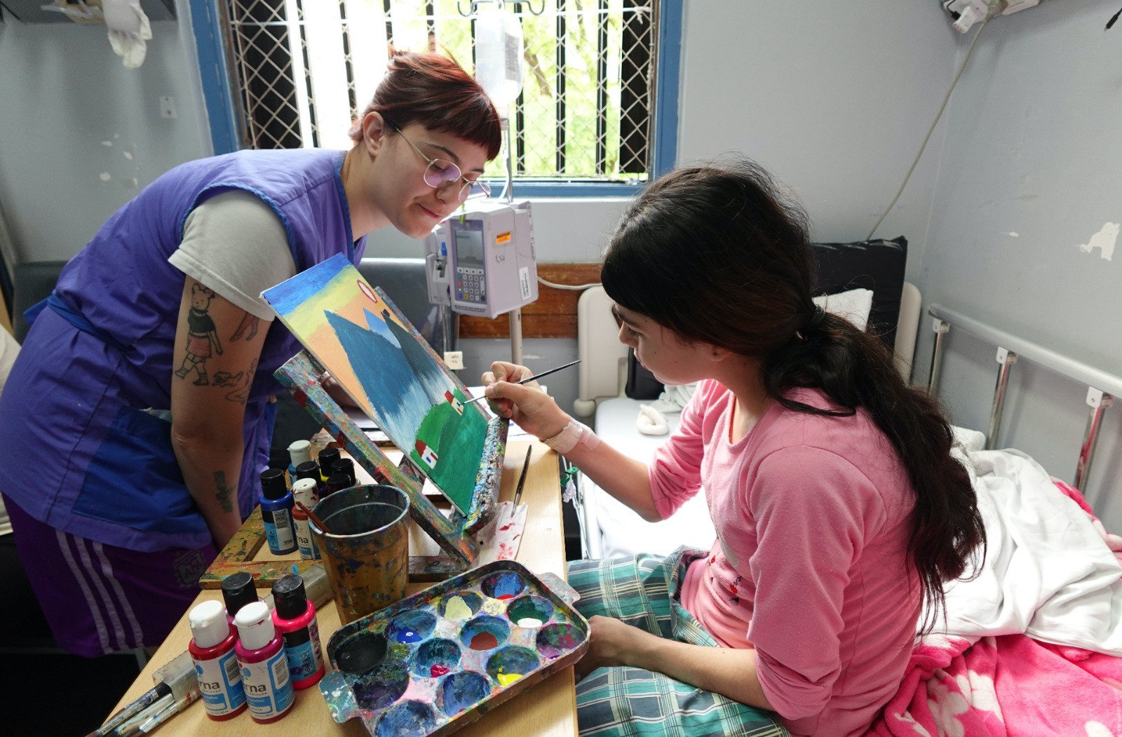 “Como docente de Vergel, puedo ver ese momento concreto en el que el arte lleva bienestar a los niñxs y adolescentes que están transitando una internación hospitalaria. Es darle espacio a su subjetividad, incentivando sus deseos mediante la pintura. Con ella se trasladan por un rato a otro lugar”.